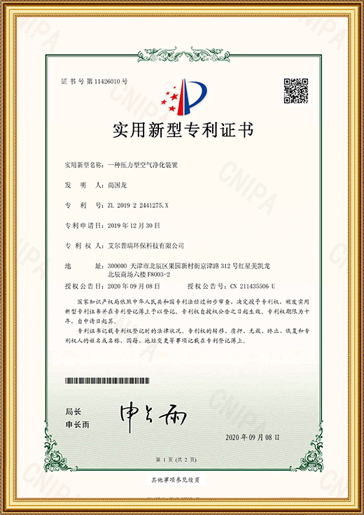 • 實(shí)用新型專利(一種壓力型空氣凈化裝置)